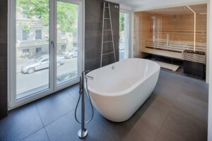 Wir gestalten Ihnen Ihre persönliche Wohlfühloase, die es garantiert kein zweites Mal gibt – zum Beispiel mit freistehenden Badewannen und Saunabädern.